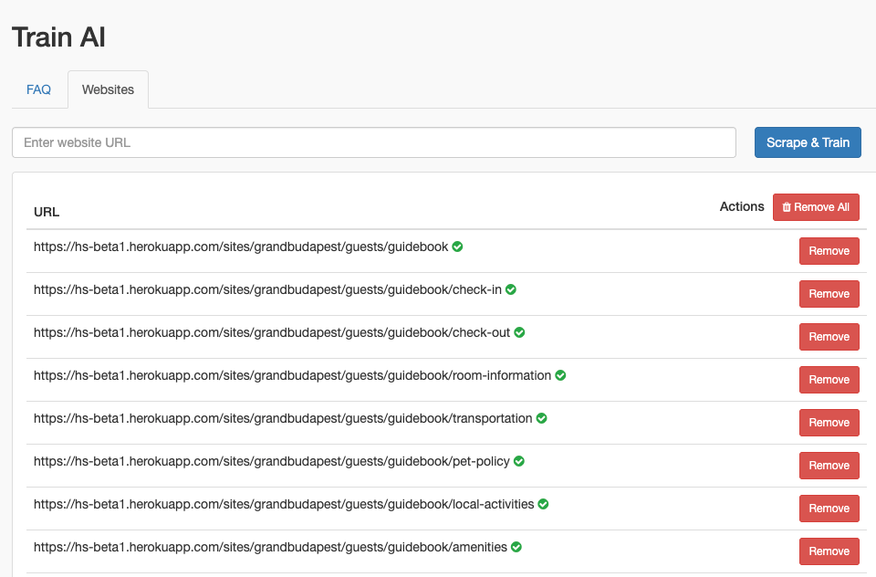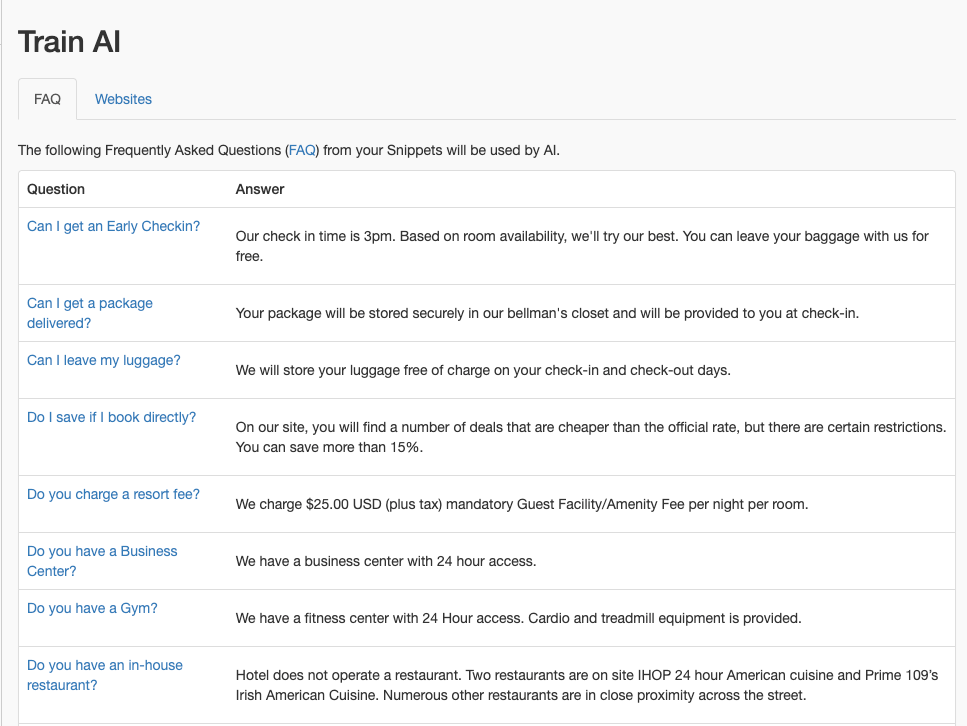 FAQ, Websites, Files for AI knowledge