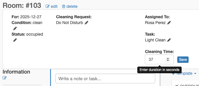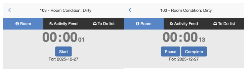 Time tracking requires rooms to be assigned and completed using the timer flow