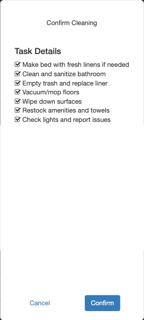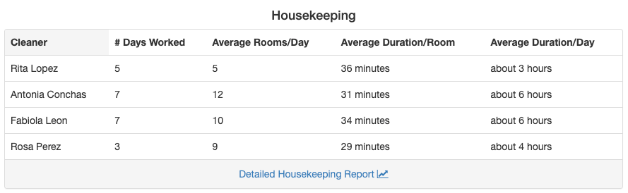Track cleaning times for every room to measure productivity, identify efficiency opportunities, and ensure fair workload distribution. Time tracking runs automatically when cleaners use the Start, Pause, and Complete buttons.